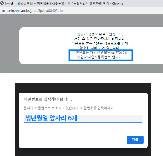 PDF 파일 암호는 본인 생년월일 앞자리 6자리다.