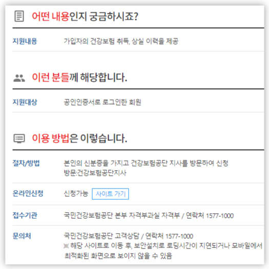 본인의 신분증을 가지고 건강보험공단 지사를 방문하여 신청가능하다.