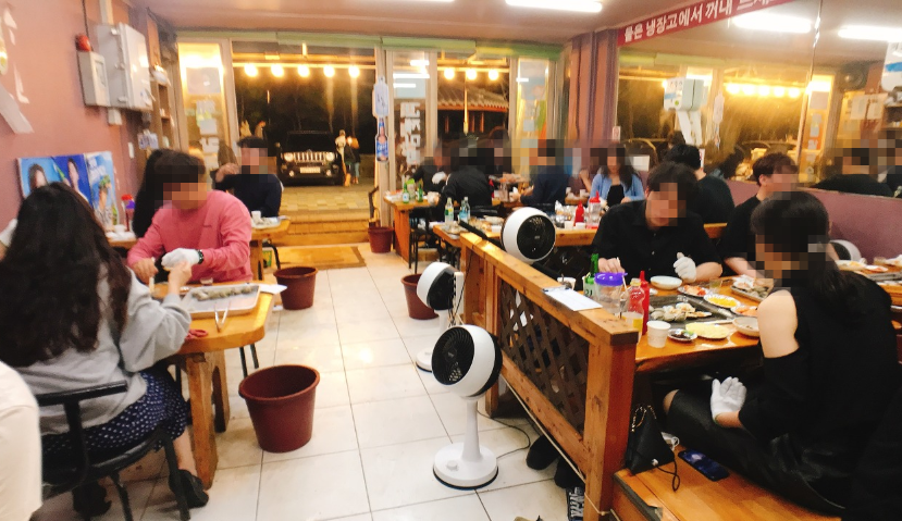 거리두기 2.5단계에도 자리 없는 조개구이 집도 상당히 많았다.