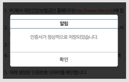 스마트폰으로 복사할 내가 보관하고 있는 인증서를 선택한 뒤 비밀번호 입력 > 모바일에서 생선한 12자리 인증번호 입력 후 확인 > 모바일로 돌아와서 확인 버튼 클릭