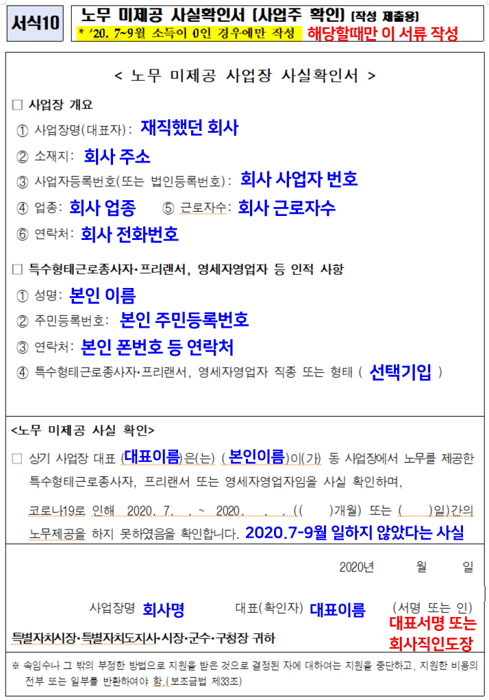 노무미제공사실확인서 정부 공식 양식 다운로드↓