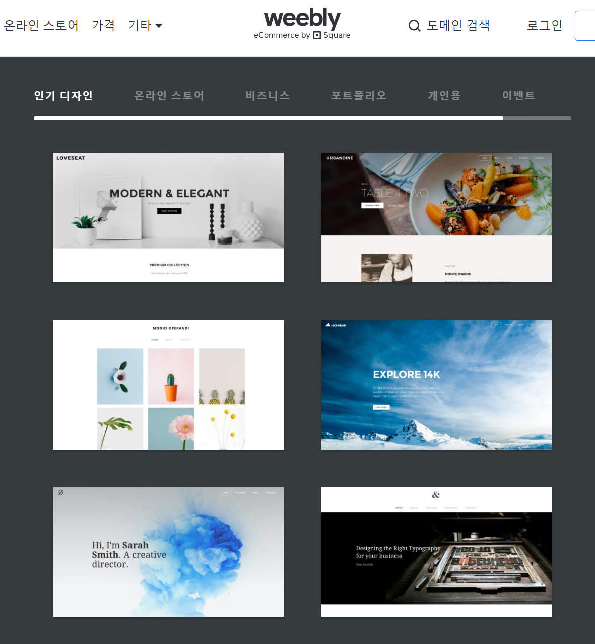 디자이너 포트폴리오용, 쇼핑몰용, 영어 블로그용