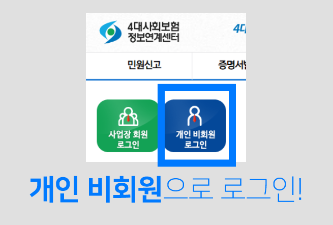 4대사회보험 정보연계센터 홈페이지 접속