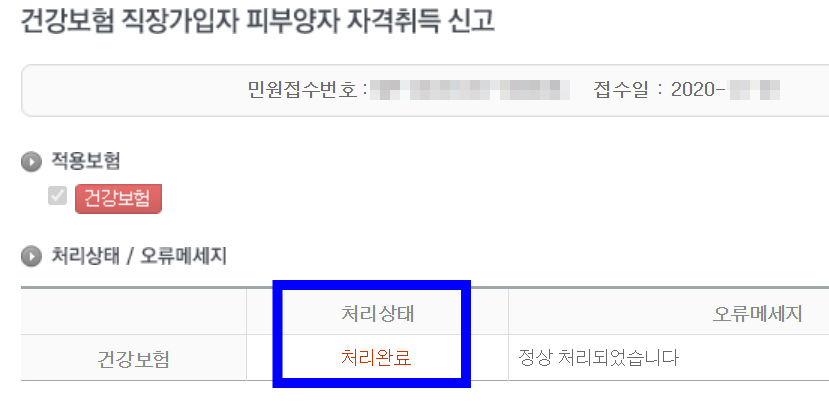 건강보험 피부양자 자격 취득 성공!