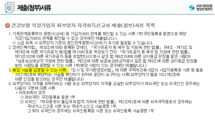 반드시 퇴직/폐업 증명서류 제출로