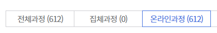 인기와 강의 수는 비례하겠지? 국비지원 받아서 들을 수 있는 관련 온라인 인강이 무려 612가지나 된다.