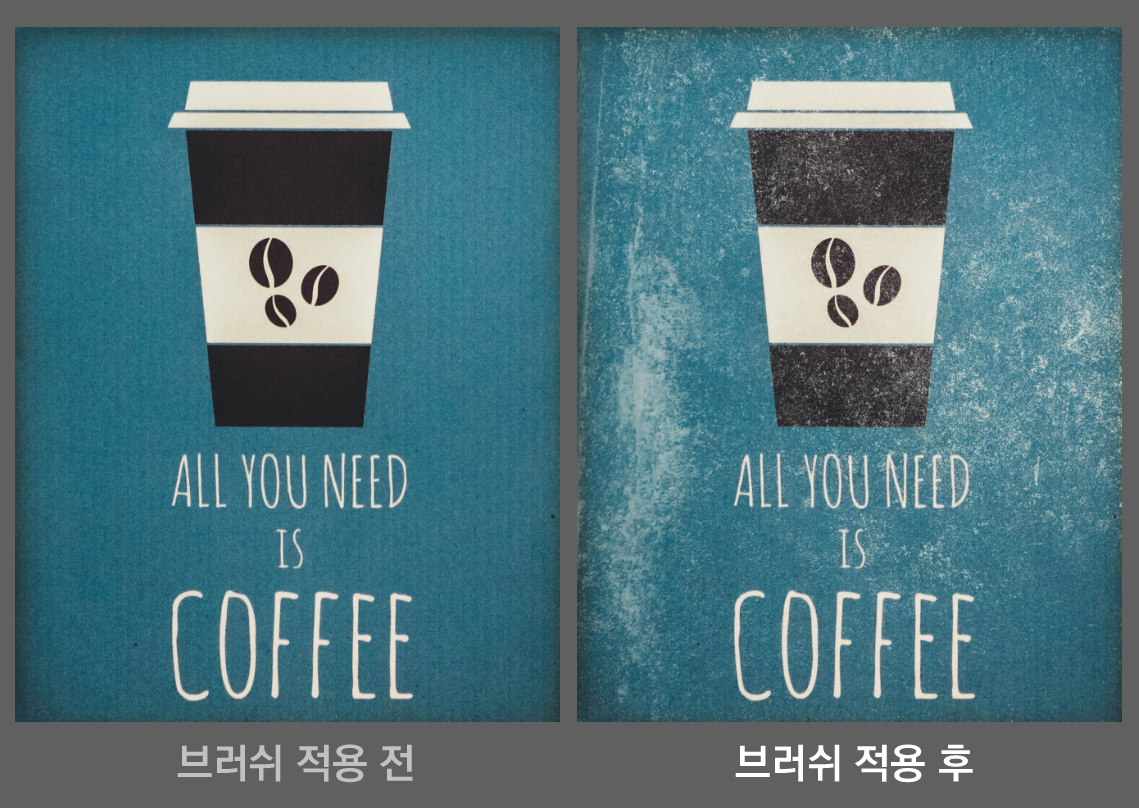 완성된 깔끔한 시안에 브러쉬 덧칠 몇 번만 해주면 완전 다른 느낌을 낼 수 있다. 큰 노력 들이지 않고 터치 몇 번으로 내 사진이나 작업물의 분위기를 바꿔줄 수 있는 효과적인 디자인 툴이라고 볼 수 있다. 일러스트레이터에서 작업하고 포토샵에 가져와 다양한 무료 브러쉬들로 디자인 효과를 극대화해보자.