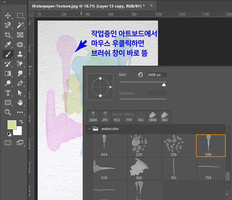 2. 마우스 우클릭해서 브러쉬창을 열자