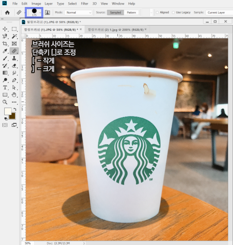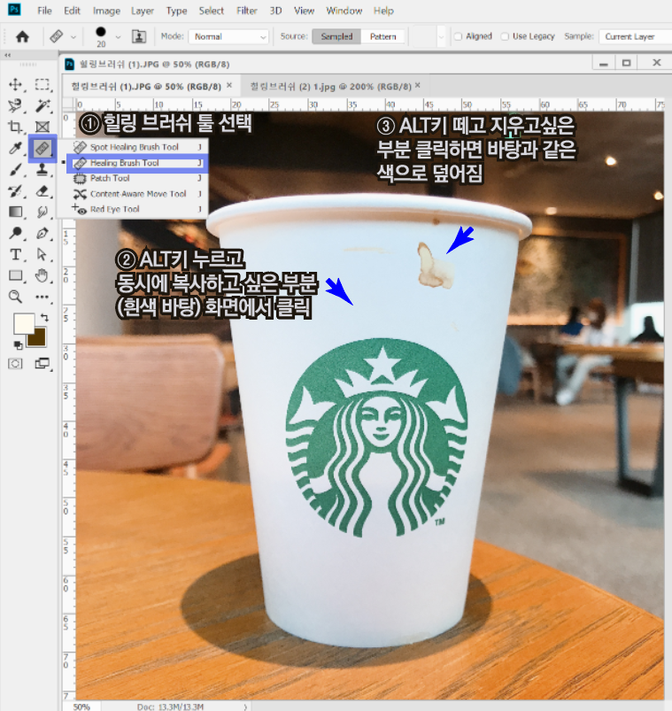 잡티제거는 힐링브러쉬로 간편하게 하자.