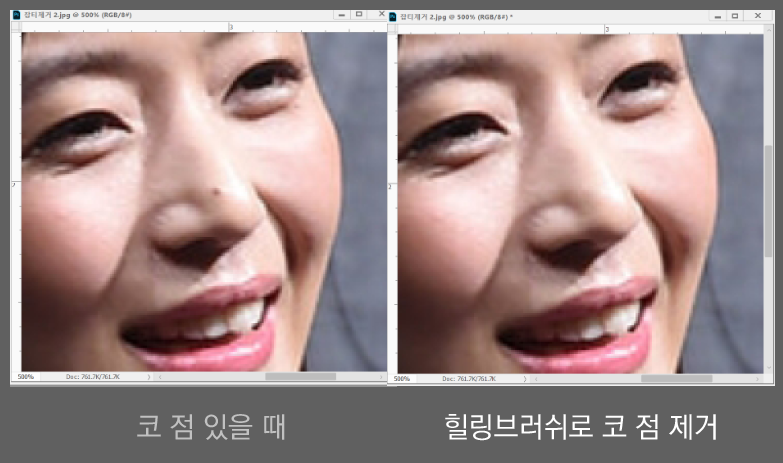 전지현씨 bhc씨의 코의 점도 제거해보았다.