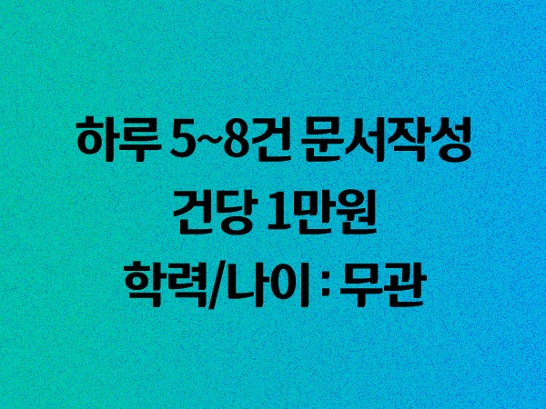 회사에서 작업 요청을 하는 날 월~토 중에 하루에 5~8건의 문서 작성해주면 되는 재택근무 알바이다. 매일 5~8건의 작업 요청이 꾸준히 있다고 한다. 제시한대로만 한다면 꽤나 쏠쏠한 수입을 얻을 수 있다.