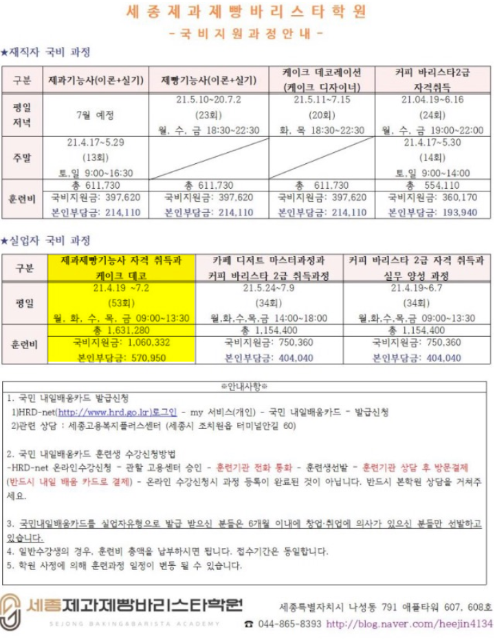 나성동에 위치한 세종제과제빵바리스타학원이다.