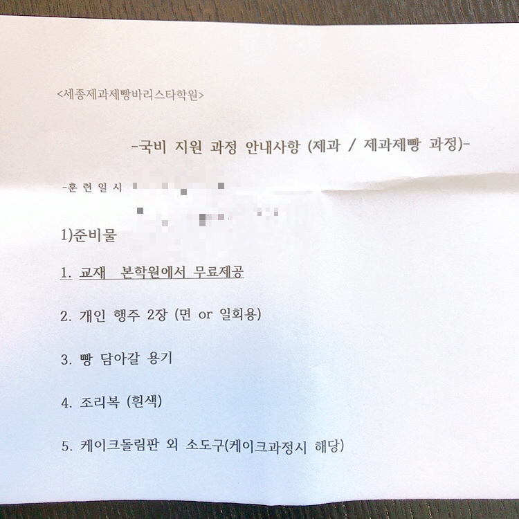조리복은 수업 첫날 학원에서 판매한다고 한다. 한벌에 25,000원. 사물함 따로 없이 매일 갖고 다녀야한다고 한다.