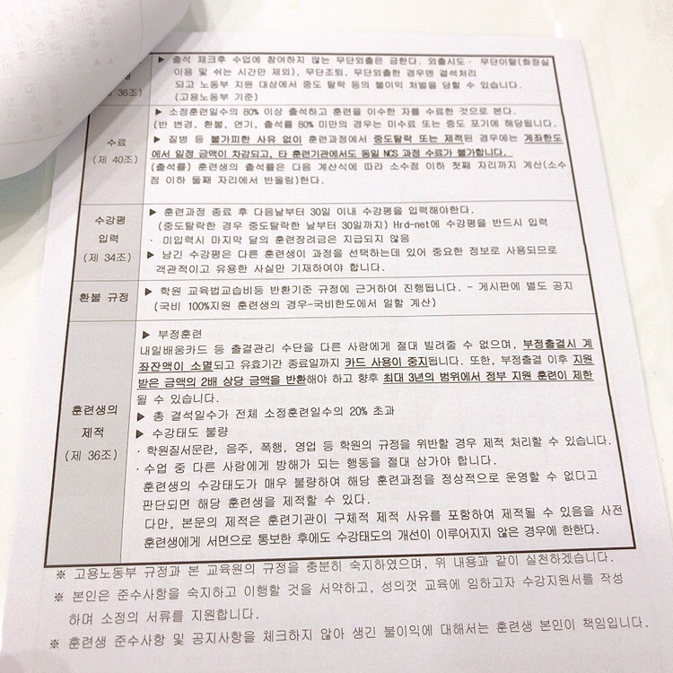 hrd에서 온라인 수강신청을 완료해도 완료된게 아니다. 학원에 직접 방문하여 설문지를 작성하고