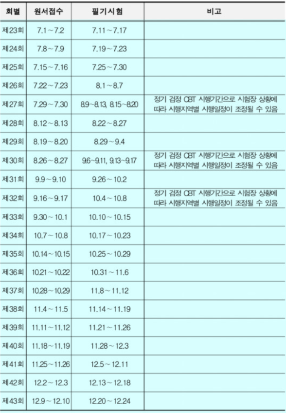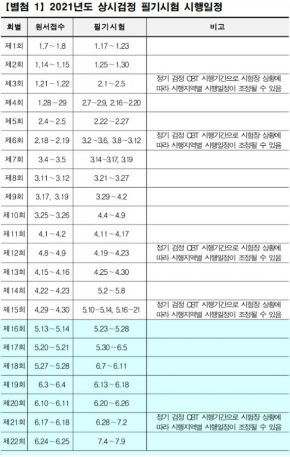 2021년 국가 자격증 필기 시험 일정