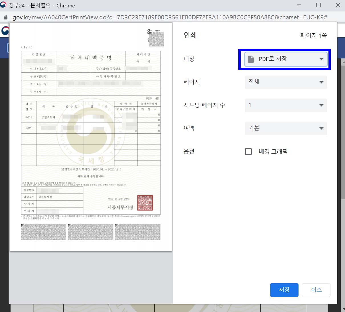납부내역증명 PDF 발급법
