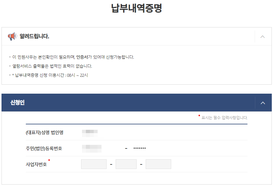 납부내역증명은 ‘공동인증서’ 로그인이