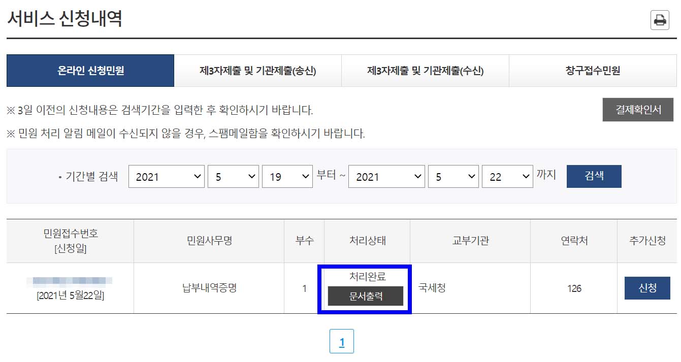 민원24 납부내역증명 발급