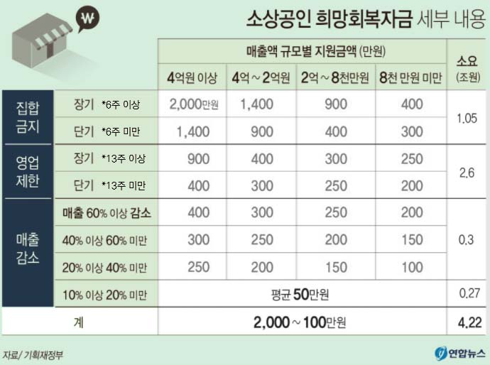 6주 이상 영업 못한 집합금지 업종 400만~2천만원