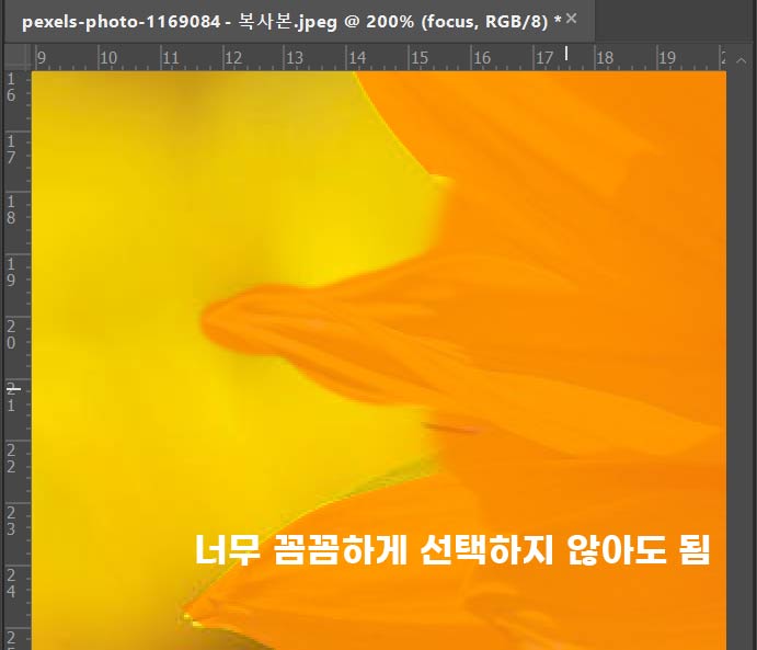 마그네틱선택툴로 꽃잎 모양을 비교적 정확하게