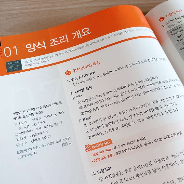 요리에 전혀 관심없고 상식도 없던 사람도 알아들을 수 있는 자세하고 친절한 설명으로 개요가 시작된다. 보다 깊은 내용으로 자연스레 들어가며 각 이론마다 옆에 정답과 함께 문제가 있어 머릿속에 한 번 더 이론을 각인시키기에 좋다.
