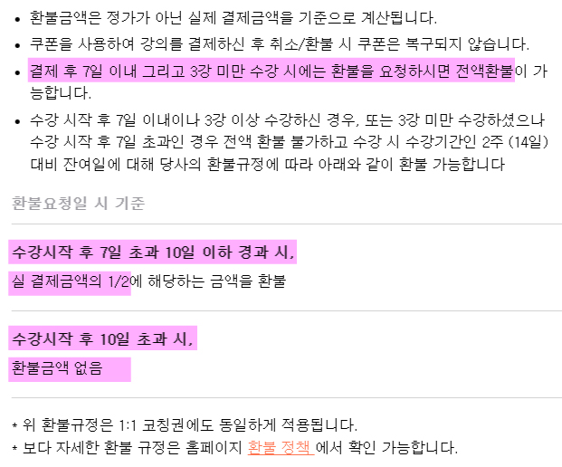 - 2강까지만 들은 상태여야 환불 신청이 가능하다.
