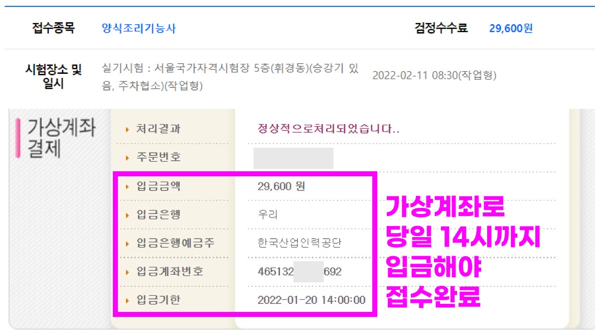 당일 14시까지만 접수비를 입금하면 된다.