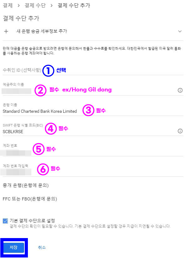 아무튼 드디어 2년 넘게 숙제 같던 외화통장 개설을 했으니 바로 구글 애드센스에서 지급 받을 계좌를 등록했다.