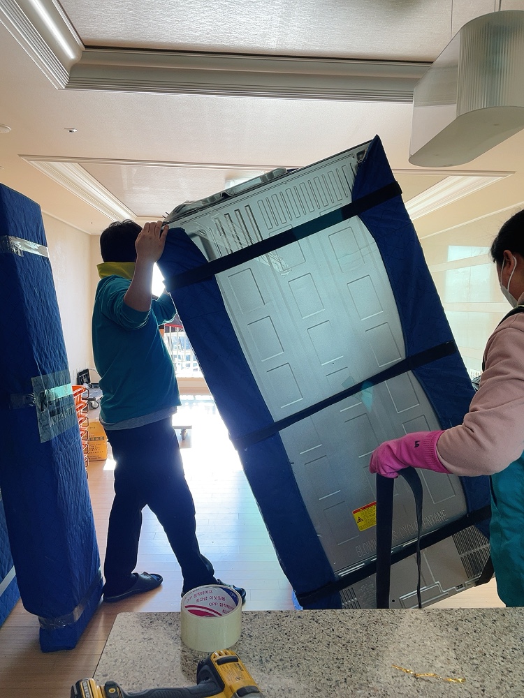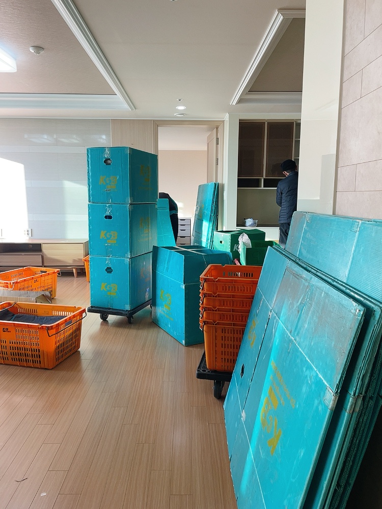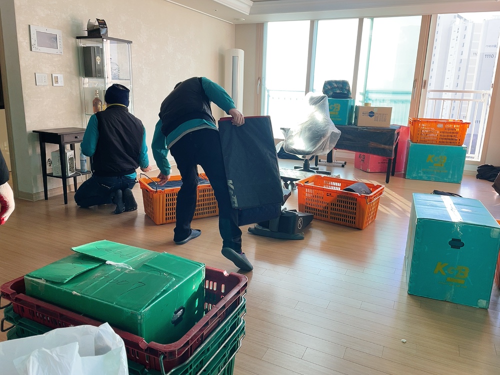 3명은 이삿짐 옮기는 남자분이고 1명은 부엌 살림 챙겨주시는 이모님이 오셨다. 각자 공간을 맡아서 포장부터 옮기기까지 맡은 분이 해주신다.