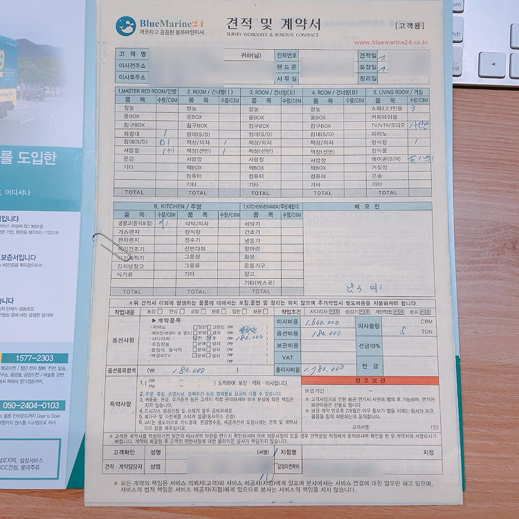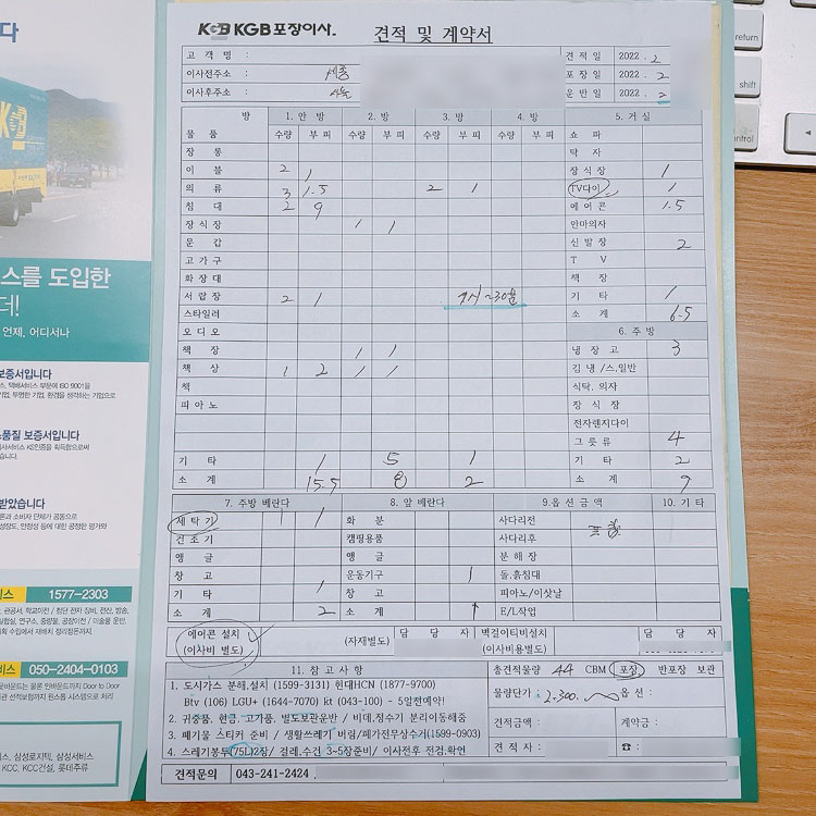 이사 약 2주전 KGB 이사 업체 직원분께서 집을 방문해서 견적을 내주고 가셨다. 견적 내시는걸 보면 사실 평수는 크게 중요치 않은 것 같다. 가장 중요한건 짐의 양! 옷가지 좀 치우고 청소 좀 해서 견적을 줄여볼 수 있는 차원이 아니라 가구와 가전의 사이즈와 갯수가 관건이다.