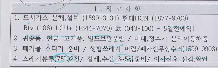 이사 나갈 곳의 관리실, 이사 들어갈 곳의 관리실에 언제 이사예정이라고 미리 고지도 해두어야한다. 이삿날 사다리차를 쓴다면 더더욱 미리 얘기해야하는데 사다리차 들어올 곳에 누군가 주차를 해둔다거나 하면 시간이 더 많이 소요되기 때문이다.