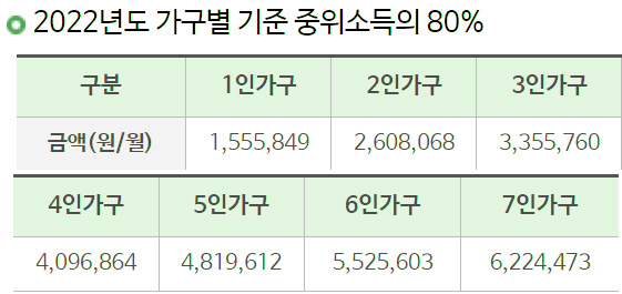 2. 중위소득 80%이하인 사람 (아래 표 참고)