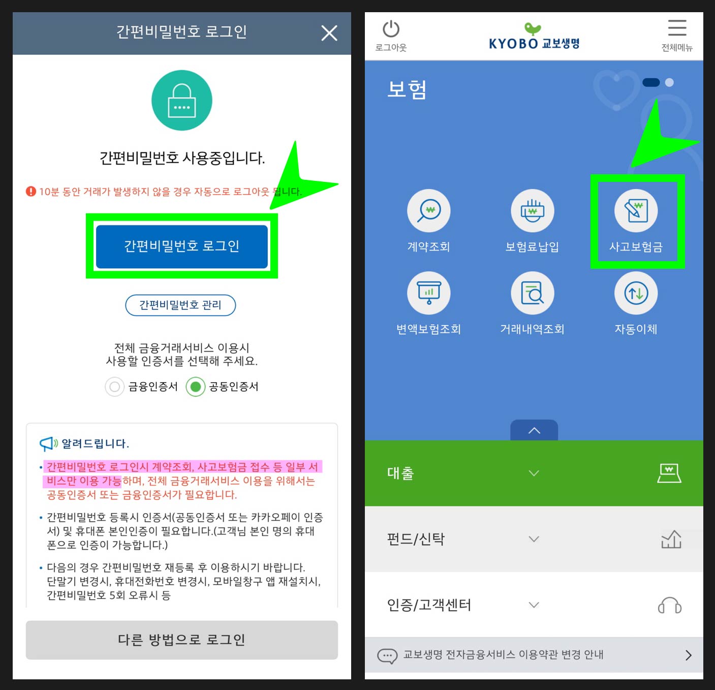 *간편비밀번호로만 로그인해도 실비보험청구 가능하다.