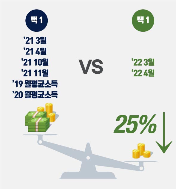 → 정부가 제시한 6가지 기간 vs 22년 3,4월 비교 소득감소 증빙 서류