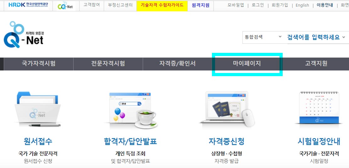 이제 큐넷 홈페이지에서