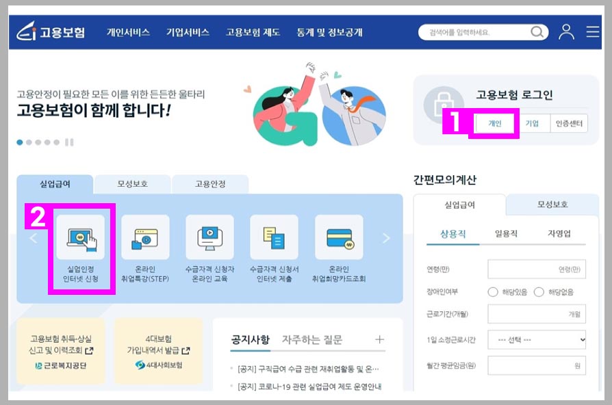 ① 고용보험홈페이지 접속 후