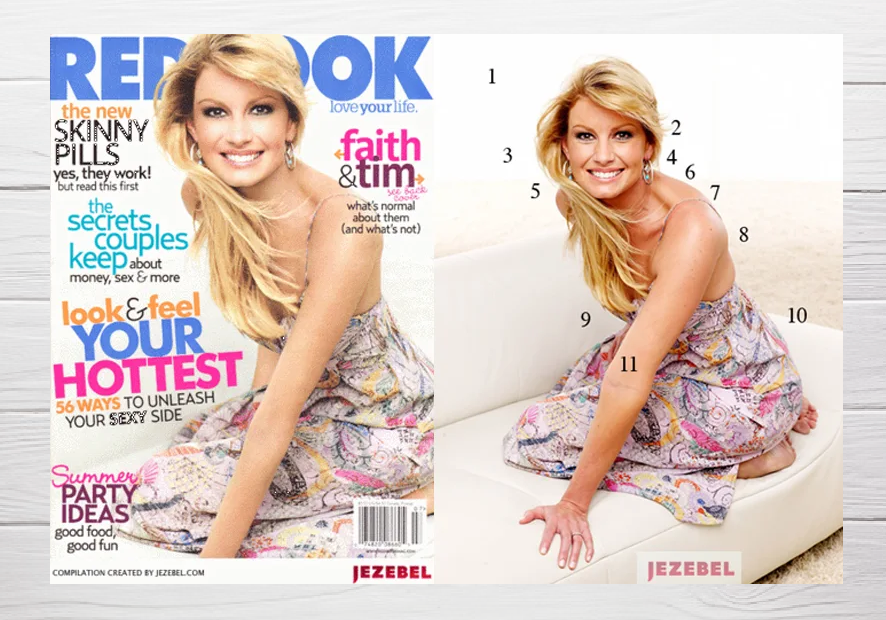 요즘 폰에서도 뽀샵이 쉽게 가능해져서 누군지도 알아보지 못할 정도의 과한 보정이 점점 심해지고 있다. 딱 봐도 티가 나거늘... 이미 완벽한 연예인들의 몸까지 보정하는 세태에 대한 부정적 시선은 미국도 마찬가지였다.