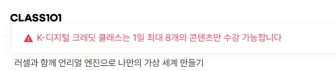 그냥 일반 클래스101 강의를 10% 내돈내산으로 보는거라면 하루에 50강을 다 봐도 되겠지만 내일배움카드로 신청한 인강 수업은 시청 갯수 제한이 하루 8강인 것을 꼭 참고하자.
