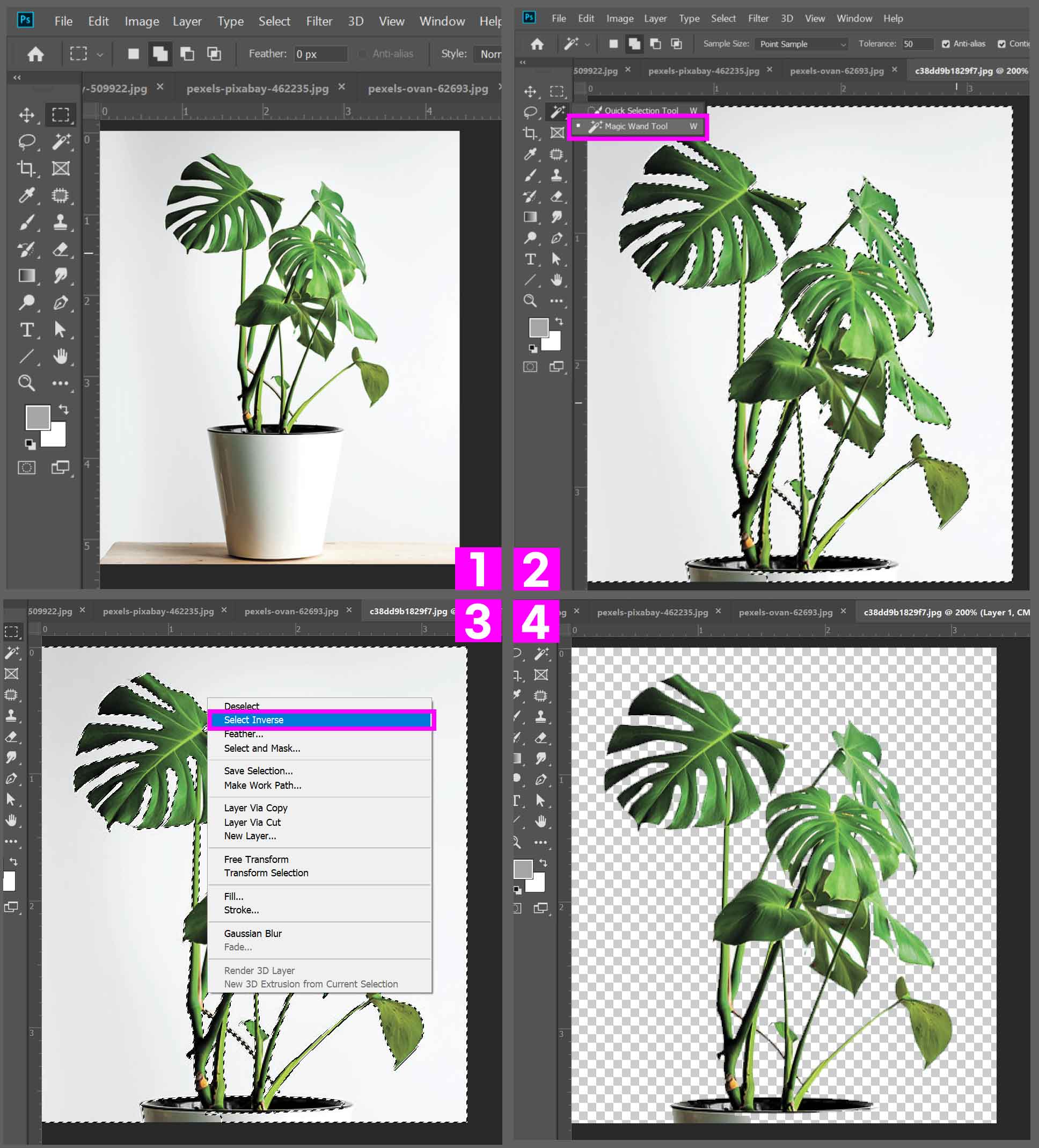 ②, ③ 마술봉툴로 배경을 선택해서 삭제한다 (배경과 분리가 쉬운 이미지를 선택하면 편하다)