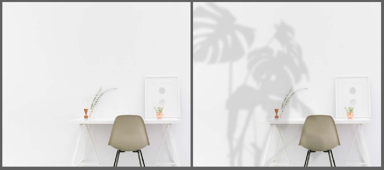 빈 배경의 적당한 위치에 나뭇잎을 가져다놓으면 감성 그림자를 만들 수 있다.