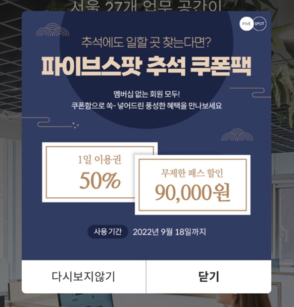 보통 연휴 전부터 쿠폰을 뿌리던데 연휴가 시작되고나서 이 쿠폰이 생겼다.