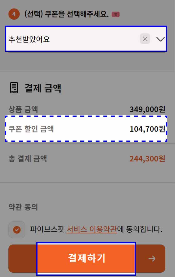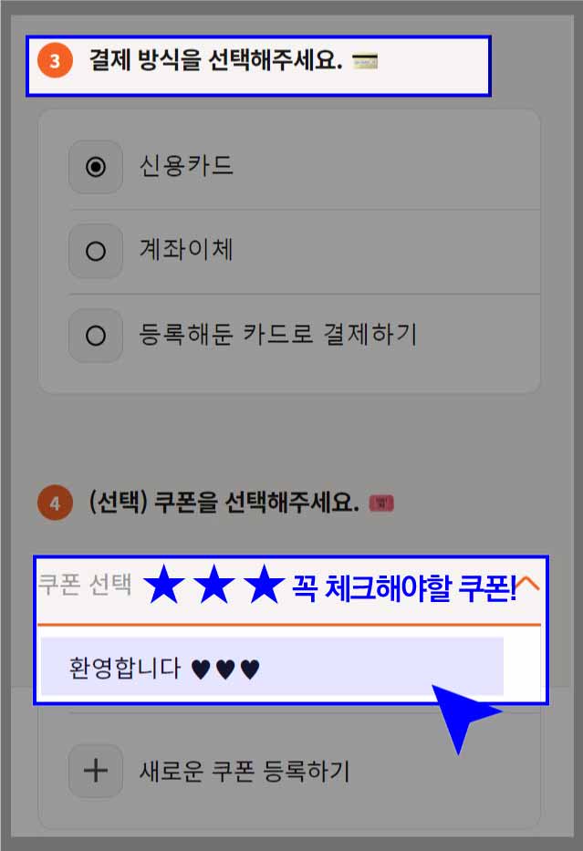 7. 결제 방식 선택 후 쿠폰 선택하기 (중요 단계)