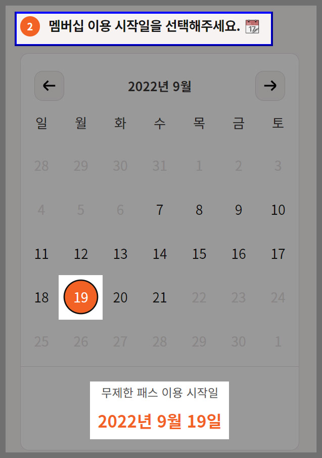 6. 멤버십 이용 시작일을 선택하자.