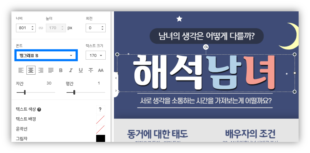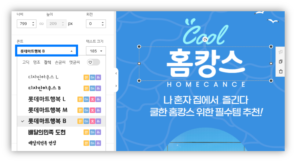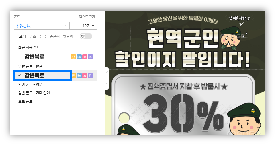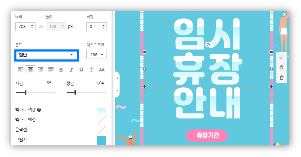 템플릿 안에서 폰트를 클릭해보면
