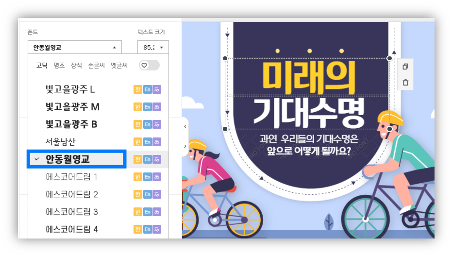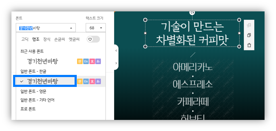 망고보드에서 폰트 확인하는
