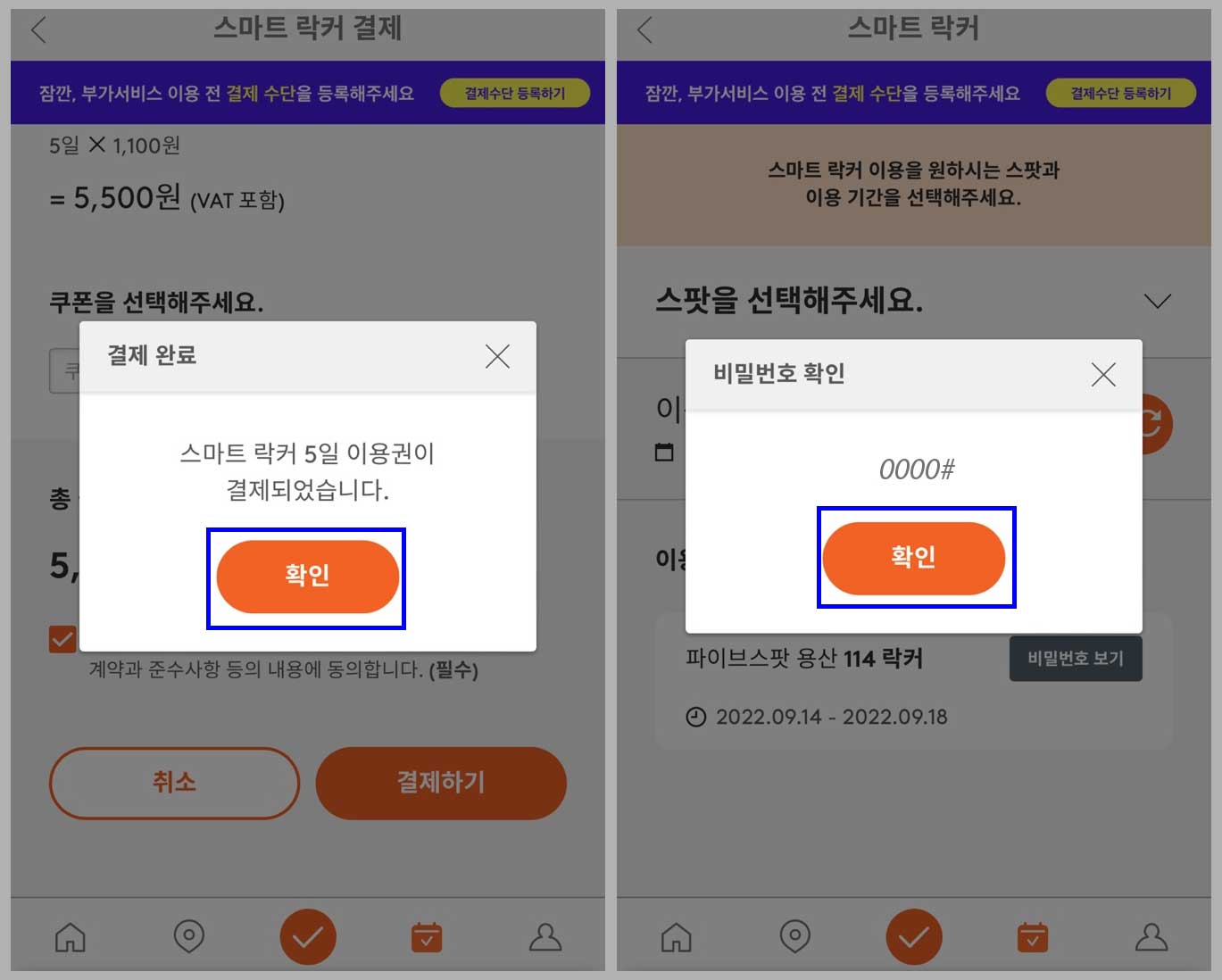 미리 결제수단을 등록해두면 절차가 더 간편해진다. 파이브스팟 정기권을 끊을 때 이미 등록해뒀다면 더 빠르게 락커 신청을 할 수 있다.
