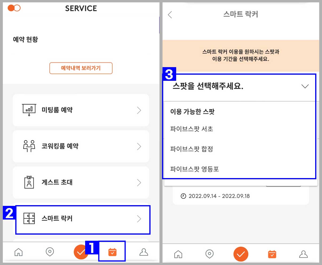 3. 락커 이용을 원하는 【 지점(스팟)】을 선택한다.