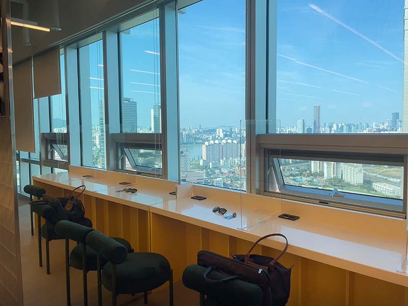 - 하나로 이어진 테이블이 많다. 옆 사람이 키보드 세게 두드리거나 테이블에 힘이 가해질 때 그대로 느껴지는 진동이 매우 싫은데 전망 좋은 자리는 다 이렇게 하나로 이어진 자리이다.