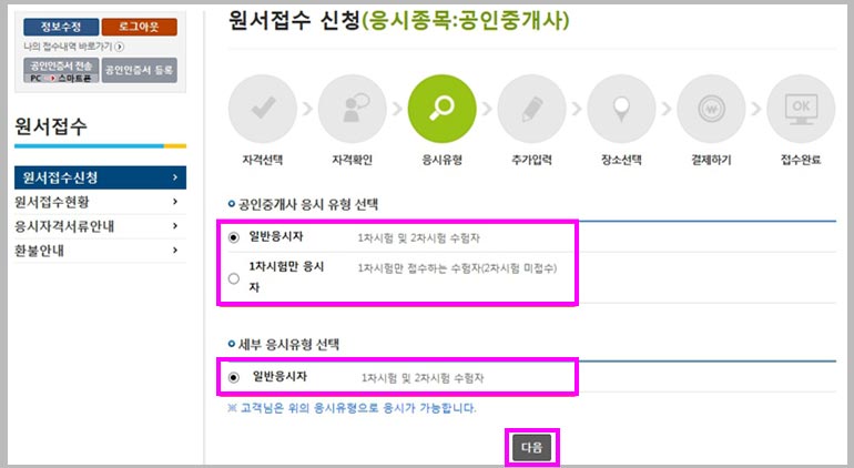 【일반응시자】 : 공인중개사 1,2차 시험 응시하면 선택