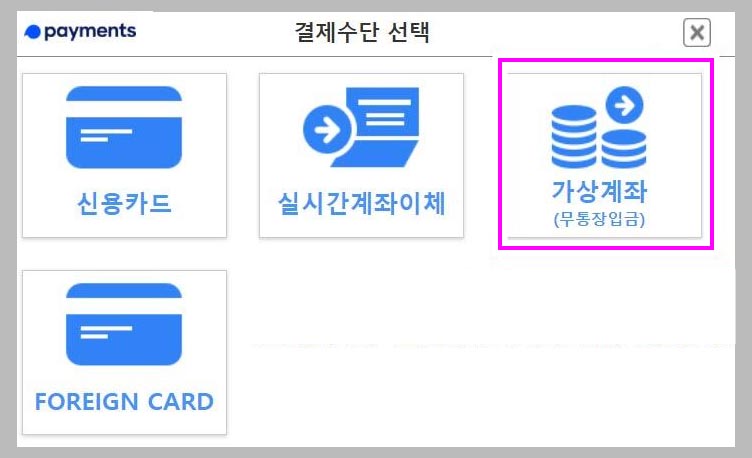 그래서 다들 가상계좌로 결제수단을 선택하는 것임